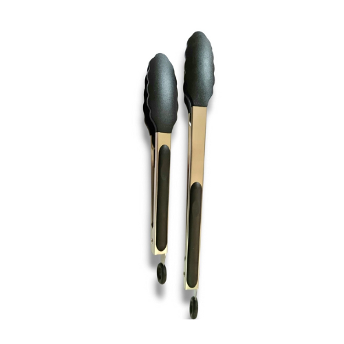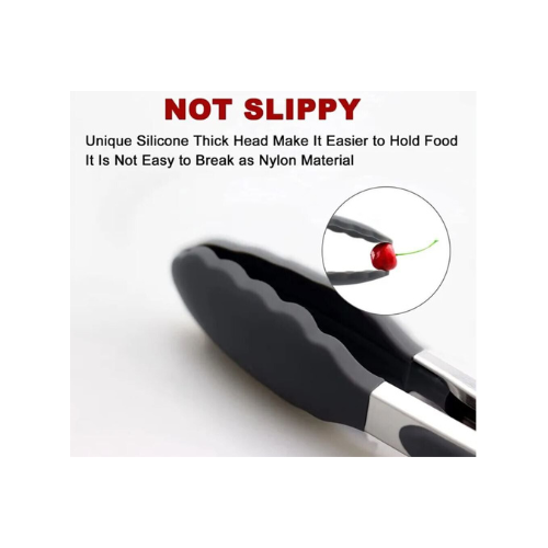The 12" Food Kitchen Salad Tongs crafted with durable stainless steel and equipped with a silicone handle provide a versatile and reliable tool for handling various foods in the kitchen. Its innovative design includes a locking mechanism for convenient storage and a secure grip, ensuring ease of use while serving salads or cooking. The silicone handle offers heat resistance and an anti-slip grip, allowing for safe and comfortable handling of hot or slippery foods. These tongs are an essential addition to any kitchen, offering durability, functionality, and ease of use for a variety of culinary tasks.